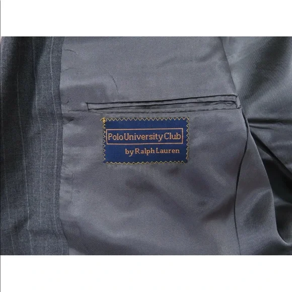 Description: NWOT Ralph Lauren Polo University Club 100% Virgin Wool 2 Button Blazer Sport Coat Jacket-Two button closure -Two front flap pockets-Left chest pocket-Single vented back-Four button cuffsSize (Check Measurements): Mens 46Color: Gray with light pinstripesFabric: 100% virgin woolCondition: New Without TagsItem#: 66113Measurements are in inchesArmpit to armpit: 23"Back bottom of the collar to the hem: 32 1/2"Shoulder to shoulder: 20 1/2"Shoulder seam to end of cuff: 24 1/2"BUYING VINTAGE·We do our best to thoroughly inspect all items for any visible imperfections i.e., rips, repairs, holes, stains, etc. and note as such.·Please note vintage sizes are not always comparable to today's sizing. Please refer to the measurements in the description for a more accurate depiction of the true size. If an issue should arrive, please contact us prior to leaving a negative as we strive for providing excellent customer service.Please compare your measurements to the measurements provided in the listing description to ensure a proper fit. 62617