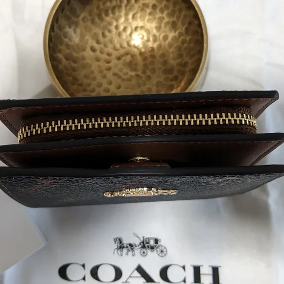 ITEM: Wallet + Gift BoxBRAND: Coach / Horse & CarriageCONDITION: New with tagsTICKETED PRICE: $168.00SIZE: 4 1/4" (L) x 3 1/2" (H) x 1" (W)PRODUCT DETAILS:Printed coated canvas and smooth leatherThree credit card slotsID windowFull-length bill compartmentSnap closureOutside zip coin pocketStyle No. C4104I hope you ❤️ love it too...