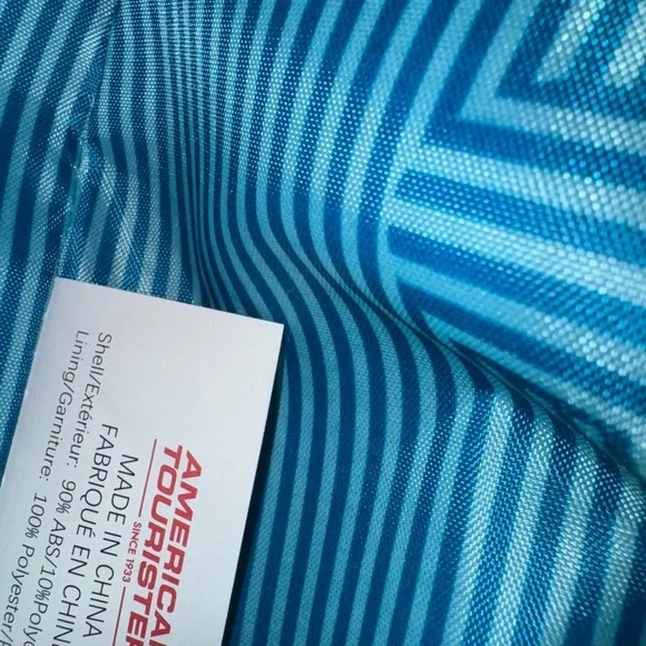 NEW UNUSED WITH TAGS SMOKE AND PET FREE HOMEAmerican Tourister Polycarbonate Composite shell protected by a layer of clear coat paint that gives it a high gloss is extremely lightweight and scratch resistantTelescoping upright handle with multiple stops for people of different heightSpring-loaded carry handles stay flat against case when not in use for a more streamlined look4-wheel spinner system for greater control and provide 360 degree smooth movementZippered expansion increases capacity by 25%Fully lined interior customized to compliment the shell artSplit case design with zippered divider give you two separate packing compartmentsFull-size zippered compartment on divider10 Year Limited WarrantyBody Dimensions: 20" x 13.25" x 9"Overall Dimensions: 23" x 13.25" x 9"