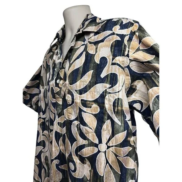Go Barefoot Mens Vintage Reverse Print Pullover Hawaiian Aloha Floral Shirt Large Pocket All Over Fish Print Button Down Collar Lightweight Cotton. Great Pre-Owned Vintage Condition Gently Worn. Ships from smoke free home. Chest 25" Measured from pit - pitLength 30" Measured from bottom of collarFeatures:• Hawaiian Shirt Reverse Print Pullover• All Seasons• Hawaiian Shirt• Made in Hawaii USA• Machine WashSize: Mens LargeGreat Pre-Owned Vintage Condition